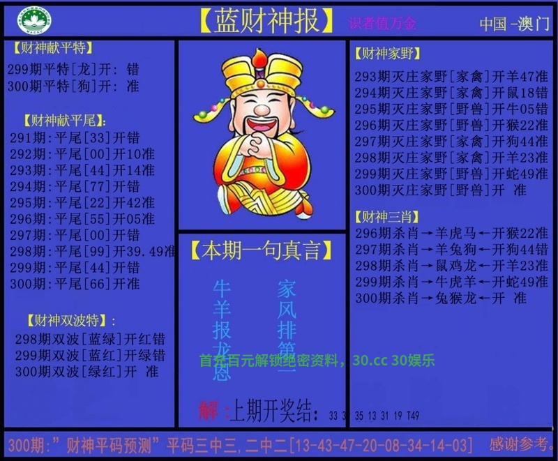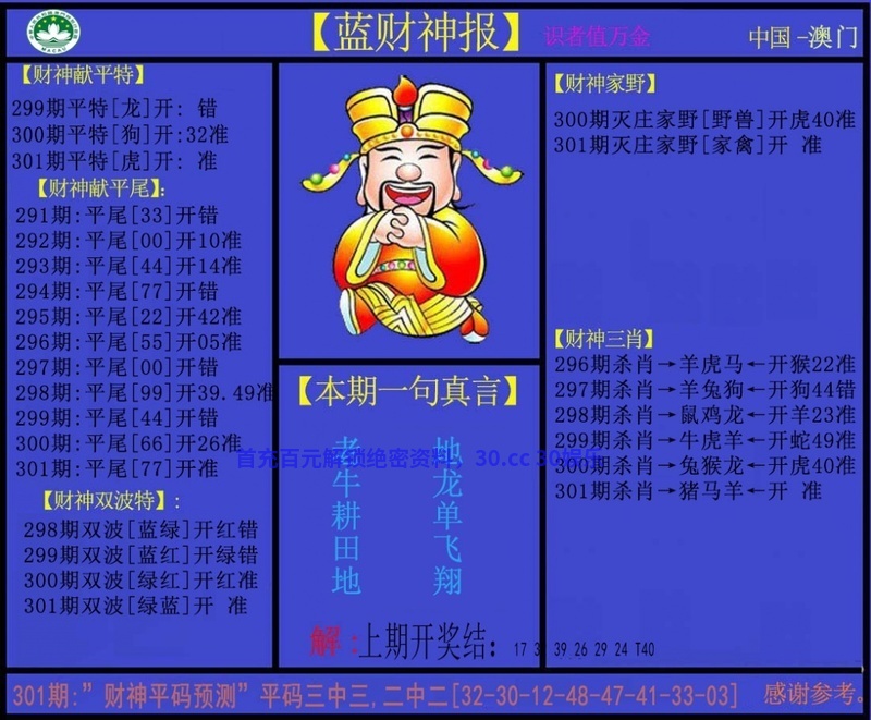 | 301期 | 羊 | 4尾 | 01合 | 發00 |